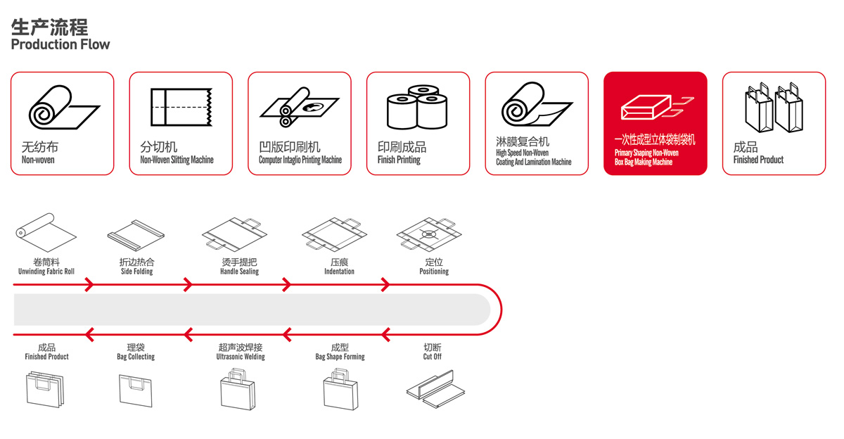 該機(jī)適用于原材料為無紡布,覆膜無紡布,專業(yè)生產(chǎn)一次成型覆膜的立體袋(免翻),設(shè)備生產(chǎn)穩(wěn)定,袋子熱合部位牢固,美觀、大方,可反復(fù)利用,主要用于生產(chǎn)無紡布煙、酒包裝袋,無紡布飲料包裝袋,禮品袋,酒店廣告袋等無紡布袋,該機(jī)集機(jī)電為一體,運用LCD觸摸屏操作。配以步進(jìn)步式定長,光電跟蹤,電腦自動定位,電腦自動糾邊,準(zhǔn)確,平穩(wěn),自動計數(shù),即可設(shè)定計數(shù)報警,自動燙把手,自動疊袋等工控裝置。